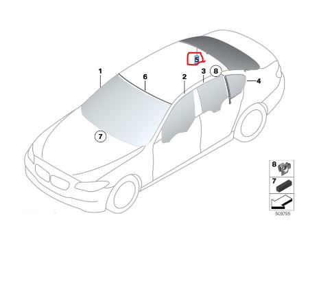 51317286069 BMW F10 ARKA CAM SIFIR ORJ 7286069